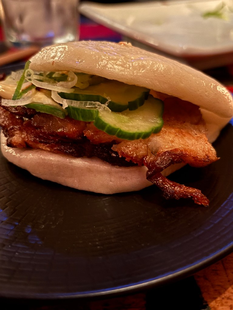These were light, simple, and delicious. The soy vinegar broth with spicy mustard really elevated the dish—comforting and flavorful. - Chashu Buns (Braised Pork Belly with Cucumber, Scallion, Kewpie Mayo, and Black Bean BBQ Sauce)