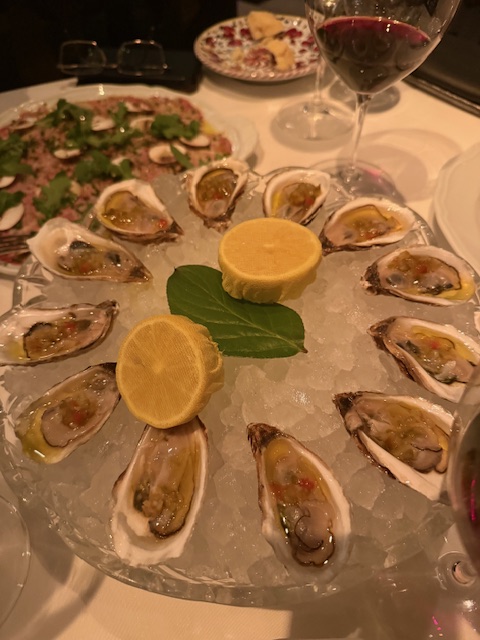 Now, let’s talk about the food. I actually hate to admit it, but it was worth the hype. We asked our server for the most popular dishes and started with the Carpaccio Piemontese, which turned out to be the best I’ve ever had, tender, flavorful, and worth every penny. The oysters were also a standout.